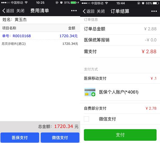 就诊服务>>门诊缴费>>选择就诊人>>选择待缴费单据>>待缴费单据明细>>选择支付方式>>确认支付