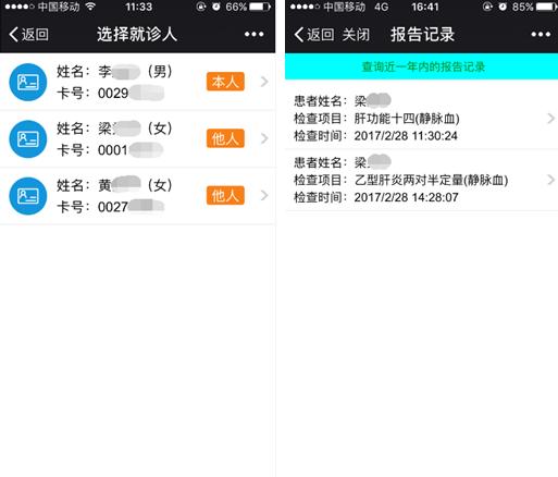 就诊服务>>报告查询>>选择就诊人>>选择报告单>>报告明细