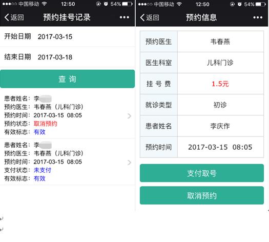 个人中心>>挂号记录>>选择日期>>查询>>选择挂号记录>>挂号信息